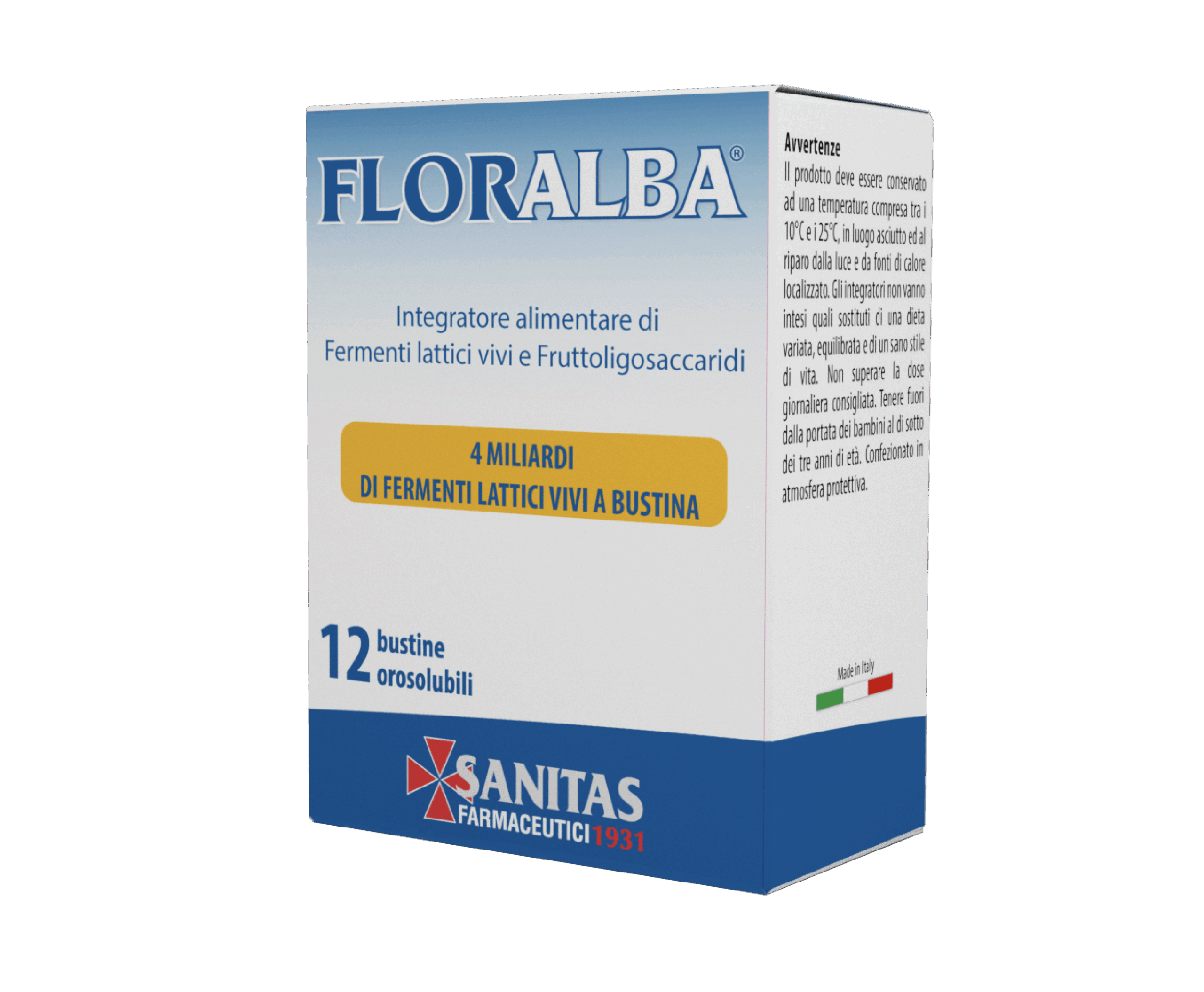 Regain the well-being of your intestine with Floralba®. The supplement with 4 billion live lactic ferments and fructo-oligosaccharides, is useful for restoring the normal balance of intestinal bacterial flora compromised by antibiotic therapy, unbalanced diet, and stressful situations.